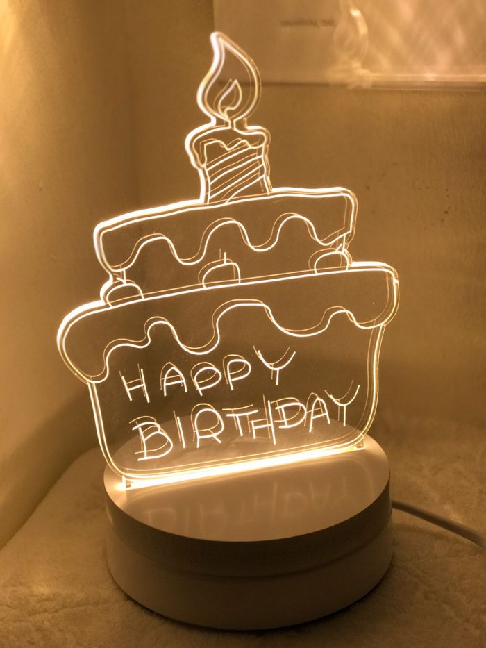May There Always Be Light In Your Life. The perfect Birthday gift for that special someone. High-quality laser-cut acrylic glass plate mounted on top of a white round base with LED lights that last for more than 30,000 hours and does not overheat.